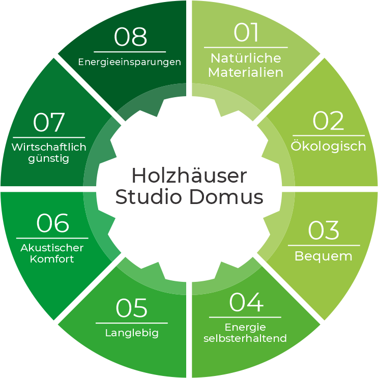 Boendekomfort är för oss känslan och medvetenheten om att leva i en hälsosam miljö med kontrollerad och stabil temperatur i alla rum, i en byggnad utan kyldbryggor, som ofta är orsaken till mögel och bakterier, i ett syrerikt utrymme. Alla dessa egenskaper har en fördelaktig effekt på vår kropp. Detta stöds av det faktum att bo i ett hus med dåligt luftflöde, dvs. i ett syrefattigt utrymme, förhindrar återhämtning från trötthet och ofta orsakar en känsla av trötthet när man vaknar. Studio Domus skapar hus med hög komfort och följer noga varje produktionssteg, från materialval, hela vägen till leverans till kunden.