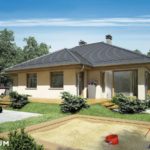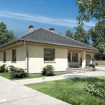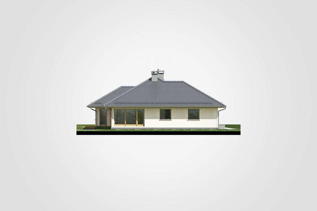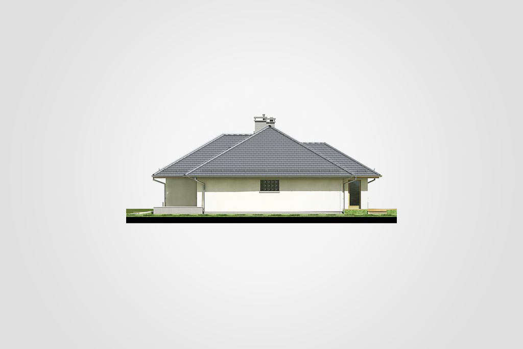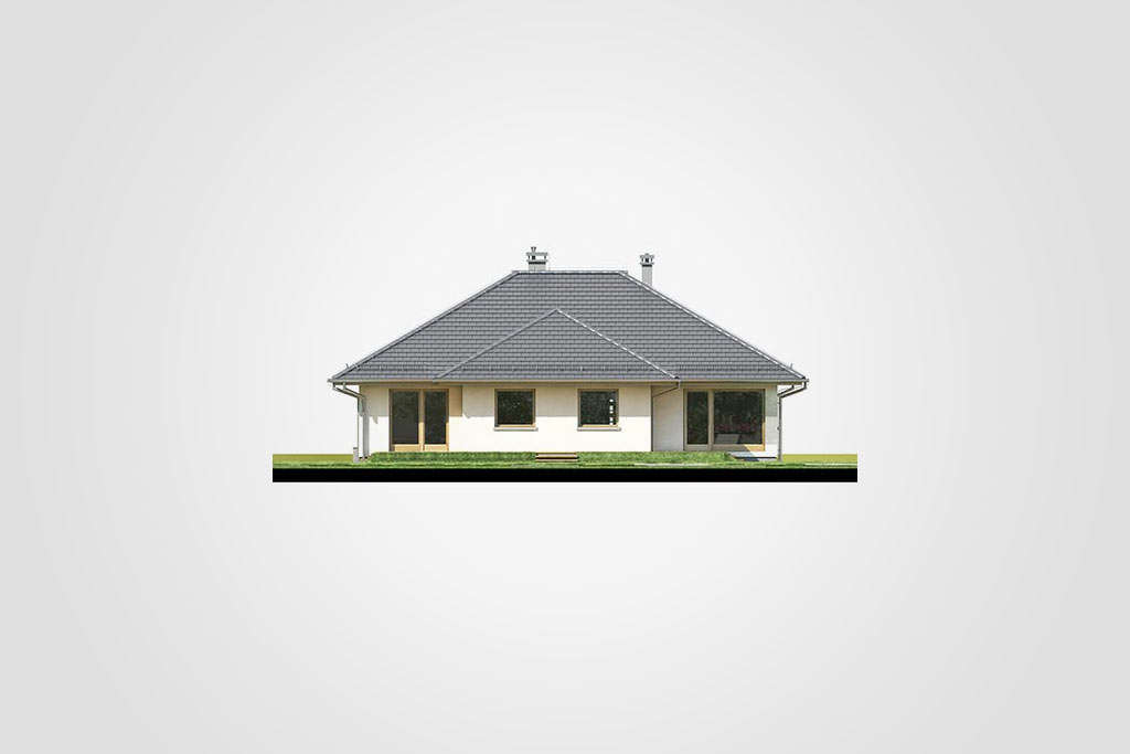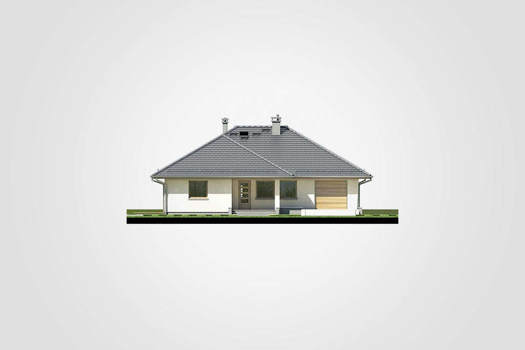 Prekrasna prizemna kuća s kosim krovom. Prostor za spavanje je u stražnjem dijelu kuće, tri velike sobe omogućit će miran odmor daleko od užurbane ulice, a veliki prozori i ostakljena vrata za izlaz na terasu u svakoj sobi osiguravaju bliski kontakt s vrtom koji okružuje kuću. Smještena u prednjem dijelu kuće, dodatna soba može se koristiti kao radna soba ili spavaća soba za goste. Tu je i veliki dnevni boravak s blagovaonicom i centralno smještenim kaminom. U prednjem djeu kuće nalazi se i velika kuhinja s prostorom za manji stol za jelo, koji se može koristiti svakodno za doručak ili večeru. Tijelo kuće uključuje i garažu za jedan automobil, kotlovnicu, predsoblje i dvije potpuno funkcionalne kupaonice: jedna služi noćnoj zoni, a druga dnevnoj zoni. Ova kuća srednje veličine privući će pažnju investitora koji cijene mir, praktična rješenja i udobnost, a njena će arhitektura lako funkcionirati kako među novim tako i postojećim zgradama.