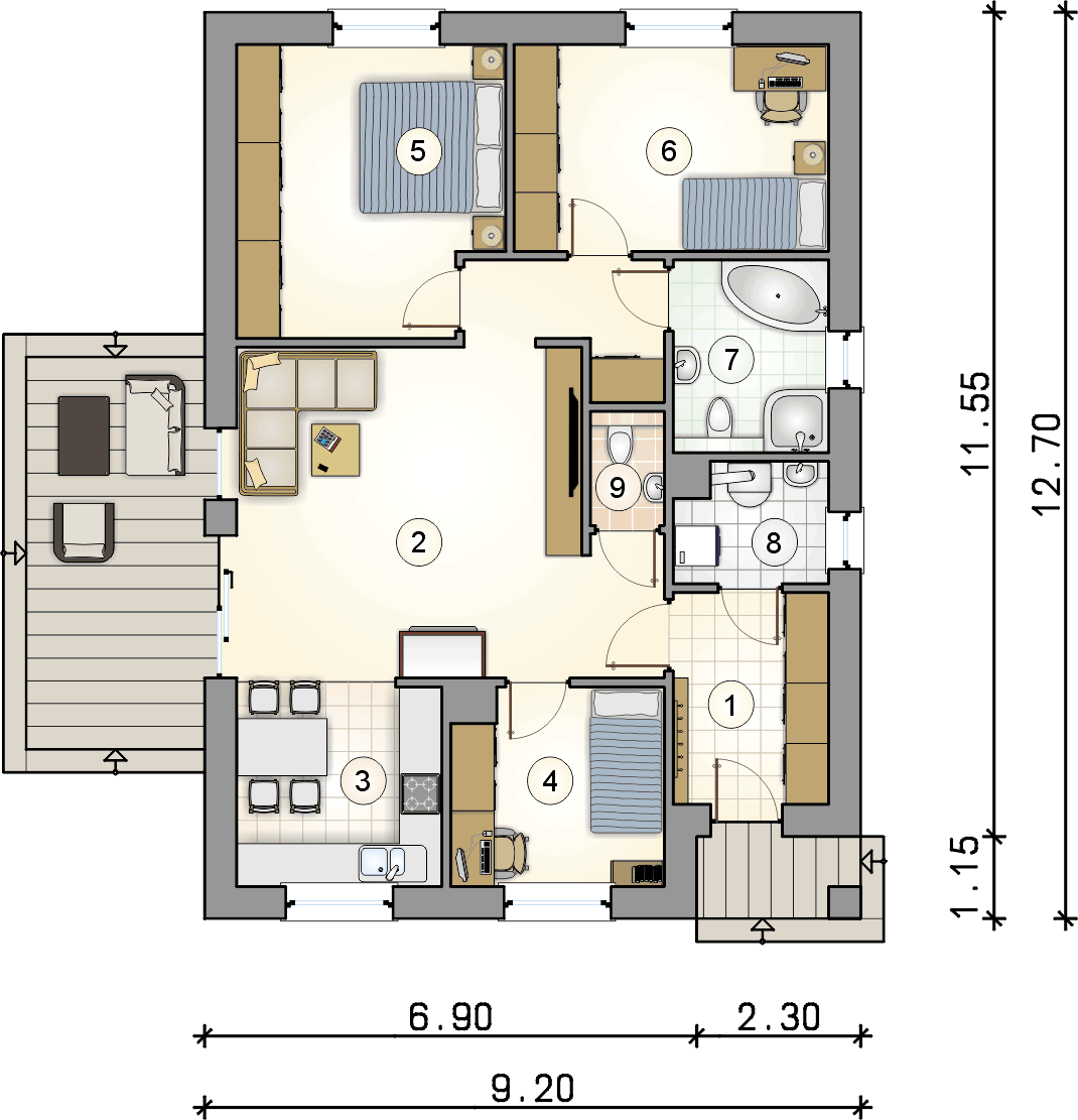 Mala, funkcionalna i klasična kuća čiji je moderan karakter prije svega naglašen kosim krovom bez streha. Bijela žbuka dobro se slaže sa materijalima u boji titana, cinka i drveta stvarajući skladnu cjelinu. Prednost projekta Adam II je njegov kompaktan oblik, što ga čini pogodnim za primjenu na malim parcelama. Kuća je namjenjena za obitelj s tri ili četiri osobe, ima kuhinju, veliki dnevni boravak s izlazom na bočnu terasu, tri sobe, kupaonicu i wc upotpunjena prostranim predsobljem i kotlovnicom. Adam II dobro će se uklopiti na bilo koju lokaciju, kako gradsku tako i prigradsku.