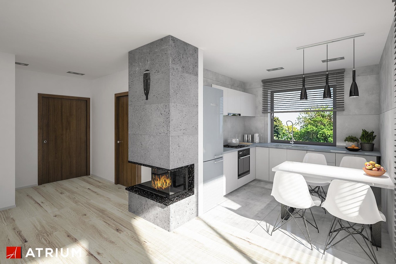 Mala, funkcionalna jednokatnica s klasičnim, jednostavnim blokom prekrivenim kosim krovom. Bijela žbuka u kombinaciji s grafitnim pločicama i suptilnim drvenim detaljima stvara skladnu cjelinu koja se dobro uklapa i u gradska i prigradska naselja. Zahvaljujući kompaktnom obliku, projekt je pogodan za provedbu na malim parcelama. Vanjska vrata zgrade dizajnirana su u arkadi. Kuća je pogodna za obitelj sa tri ili četri osobej. Središnje mjesto kuće je dnevni boravak sa kaminom i izlazom na bočnu terasu. S prednje strane dizajnirana je kuhinja i mala soba, koja može djelovati kao radna soba ili spavaća soba. Straga, u mirnijem dijelu kuće nalaze se dvije spavaće sobe. Prednost dizajna je jednostavan tlocrt tako da troškovi izrade i uporabe neće biti visoki.
