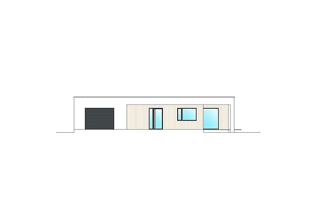 Osnova telesa stavbe je kvadrat, ki ga po svoji preprostosti in eleganci bistveno razlikuje od drugih. Zasnova, prepletena z betonskim okvirjem, daje hiši edinstven značaj. Enostavnost in eleganca te hiše sta tudi kombinacija bele in toplih barv lesa, ki sestavljajo fasado. Tudi notranjost hiše je preprosta, a funkcionalna rešitev, razdeljena na tri dele: gospodarski, dnevni in nočni. Gospodarski del je garaža z enim mestom, iz katere vodita dva izhoda v tehnični prostor in garderobo. Tehnični prostor velikosti skoraj 7 m2 lahko opravlja številne funkcije, odvisno od povpraševanja (skladiščenje, skladiščenje itd.). Garaža je osvetljena skozi široko okno, tako da je lahko na primer delavnica.