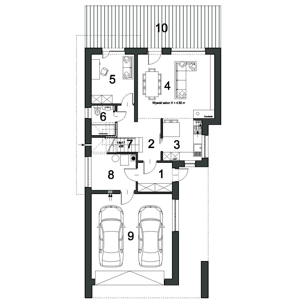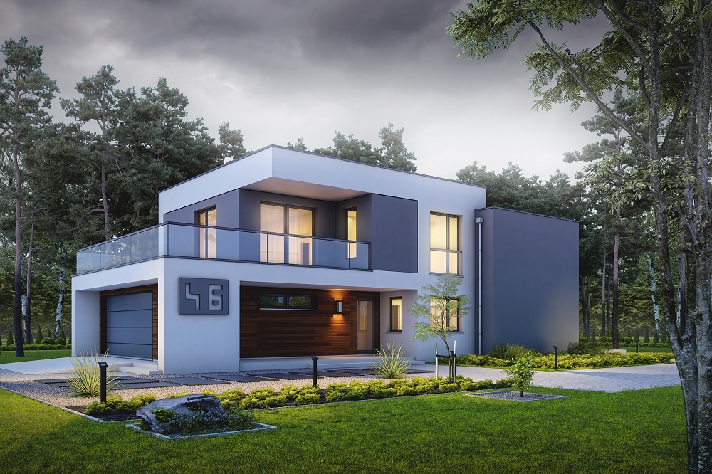 Predstavljamo naš naslednji dizajn, hišo D46. Oblika te hiše predstavlja slog moderne gradnje. Zaznamujejo ga ravna streha in moderne fasadne barve. Če je vaša zazidljiva parcela precej ozka, a želite, da vaša hiša izstopa z zanimivo moderno podobo – vas vabimo, da se seznanite z našim novim projektom D46. Zemljišče, potrebno za gradnjo te hiše, mora biti široko vsaj 15 metrov. D46 je tipična družinska hiša. Sestavljen je iz 5 sob skupaj z dnevno sobo. V pritličju je dnevna soba s kuhinjo, kopalnica in dodatna soba, ki lahko služi kot delovna ali spalnica. Na voljo je tudi dvojna garaža ter vsi potrebni tehnični in pomožni prostori. Prvo nadstropje je kot običajno spalni del hiše. Na voljo so tri spalnice, ena od njih pa ima tudi garderobo. Poleg tega je kopalnica in ločeno stranišče. Iz ene spalnice se lahko poda direktno na skoraj 30 m2 veliko teraso.