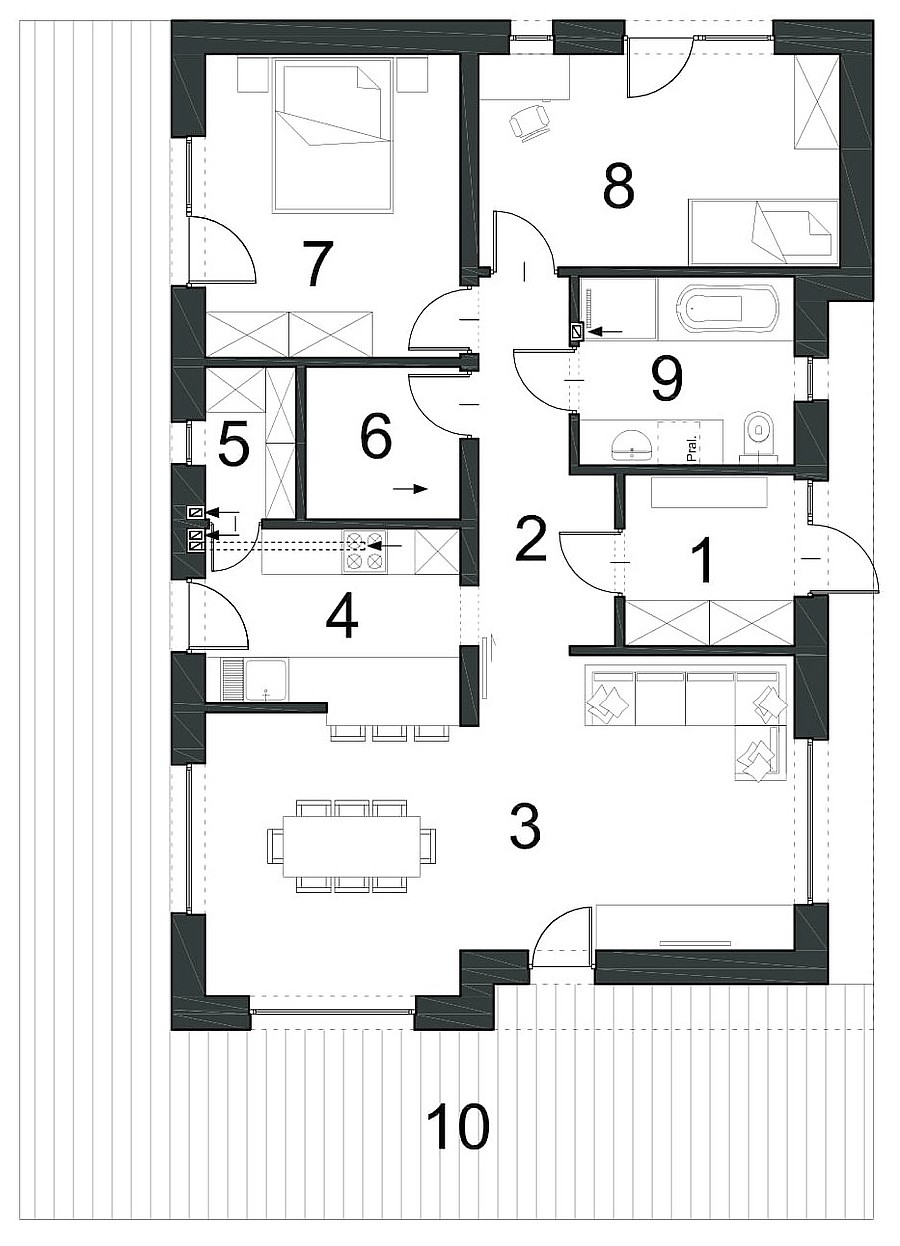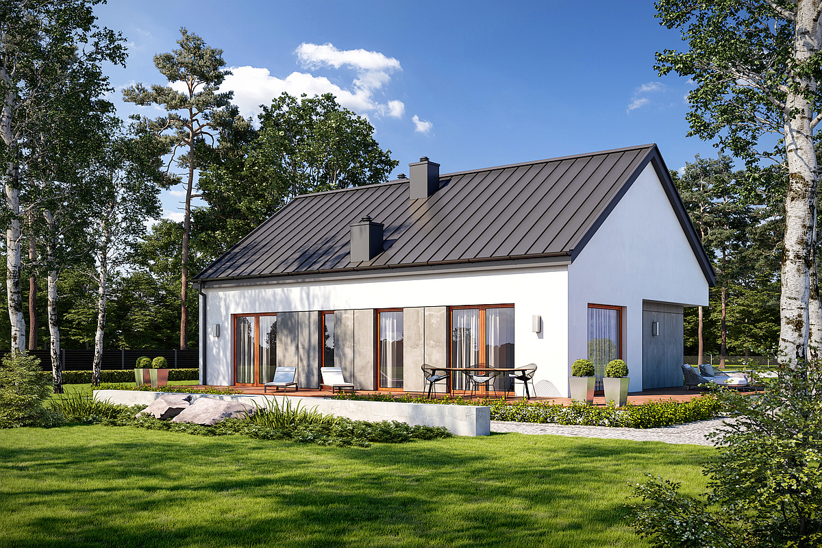 D52 är till för dig som letar efter ett klassiskt, harmoniskt hus med en arkitektonisk enkel stil. Huset är simpelt i stilen men dess fasad bryter dock normerna för det traditionella huset. I fasaden finner du trendiga grå och vita färger i kombination med rå betong tillsammans. Husets fönster och dörrar är täckta med ramar i färgat trä. Alla dessa små kombinationer på husets utsida gör det modernt och annorlunda. Inuti hittar du ett stort och öppet vardagsrum som är anslutet till matsalen. Det kombinerade vardagsrummet och matsalen har stora fönster som ger en ljus och fräsch känsla i huset. Vardagsrummet är delvis öppet mot köket vilket ger ett intryck av en ännu större yta i huset. Huset har två sovrum och ett stort badrum på bottenvåningen. Det finns dessutom ett rymligt skafferi i anslutning till köket. D52 är ett hus med en liten men användbar boyta på 86 m². Tack vare att huset är lite mindre så innebär det lägre underhållskostnader, framförallt gällande uppvärmningen av huset.