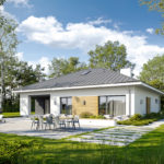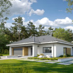 D62 je hiša majhne površine le 112,42 m2 z dvojno garažo 30,29 m2 in preprosto, kompaktno tlorisno, ki se bo prilegala na parcelo minimalnih dimenzij 23,14 x 23,64 m. Pritličje D62 je oblikovano kvadratno in pokrito s poševna streha. Fasada je zasnovana v zelo svetlih in toplih belih barvah ter dodatno poudarjena s svetlim lesom. Kot pri vseh naših projektih smo se tudi mi osredotočili na velika okna, ki osvetljujejo vsak kotiček hiše, zaradi česar so vsi prostori svetli in topli. Pri vstopu v D62 gremo skozi predprostor, iz katerega je neposreden vhod iz garaže.