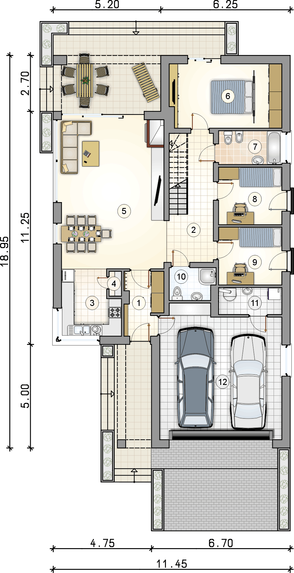 Kraska II je elegantna kuća s malim potkrovljem, na kojem je osmišljen prostor za rekreaciju. Program prizemlja uključuje dnevnu i noćnu zonu. U predsoblju je predviđen prostor za garderobu i osmišljen prolaz do garaže. Kuhinja, blagovaonica i dnevni boravak su u jednom otvorenom prostoru. Na izlazu iz dnevnog boravka je natkrivena terasa, koja će biti mjesto opuštanja za članove domaćinstva i njihove goste u toplijim godišnjim dobima. U noćnoj zoni dizajnirane su tri spavaće sobe, uključujući i onu sa vlastitim ormarom i izlazom na terasu. Tu su i dvije kupaonice i pomoćne prostorije, koje ne bi smjele nedostajati nijednoj kući, Kotlovnicia i ostava. Do drugog kata, u kojem se nalaze soba za rekreaciju i kupaonica, pristupa se jednosmjernim stubištem u predvorju. Sa prednje strane dizajnirana je garaža za dva automobila. Zgrada s bezvremenskim oblikom izgleda vrlo elegantno. Svijetla fasada savršeno se slaže sa sivom drvenom konstrukcijom i drvenim elementima. Kraska II bit će savršena i za gradska i prigradska imanja i bit će ugodno mjesto za obitelj od četiri ili čak pet osoba.